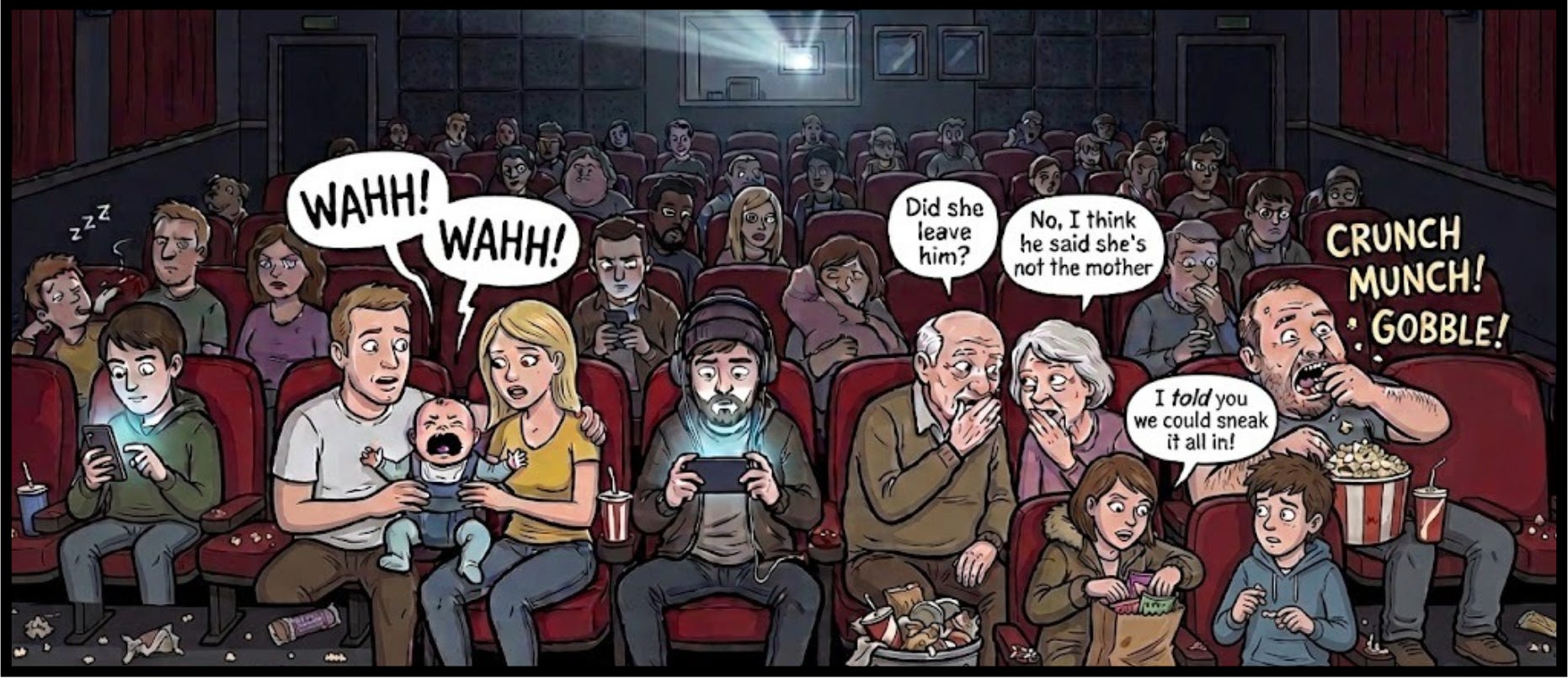 So, for those of us who grew up in the 60’s and 70s, (during what I think was the last golden age of movie theaters), going to the movies today can be a painful experience.