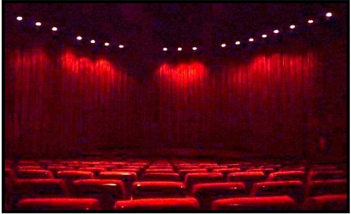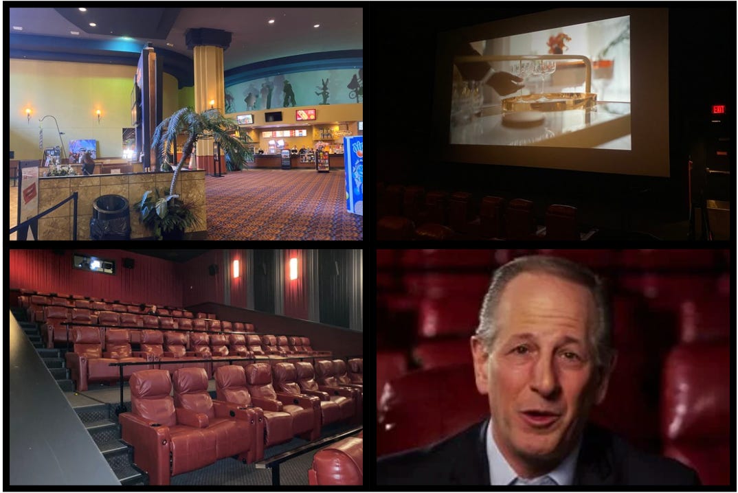 To me, the movie screens in these multiplexes are like giant televisions filled with flashy commercials trying to sell us things we don’t want or need. Since all movies are now digitally projected, once the movie actually begins, it’s really no different than pressing “play” on your remote control (only at a modern multiplex it’s automated on the theater’s hard drive).
