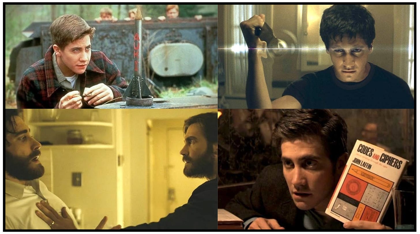 Let’s take a look at the wide variety of characters Gyllenhaal has portrayed through the years. First, there’s Homer Hickam, the small-town kid who dreams of rockets in October Sky. Then, two years later in Donnie Darko, Gyllenhaal morphed into a disturbed suburban teen living in a possible alternate reality. After that came gay cowboy Jack Twist in Brokeback Mountain; then, in one of Gyllenhaal’s most restrained performances, he played the nerdy obsessive Robert Graysmith seeking to unmask the serial killer’s identity in Zodiac. In addition, in Enemy, Gyllenhaal played both the main character, Adam, and his doppelganger, Anthony, in Denis Villeneuve’s complex thriller; and of course, no one can forget Lou Bloom in Nightcrawler.