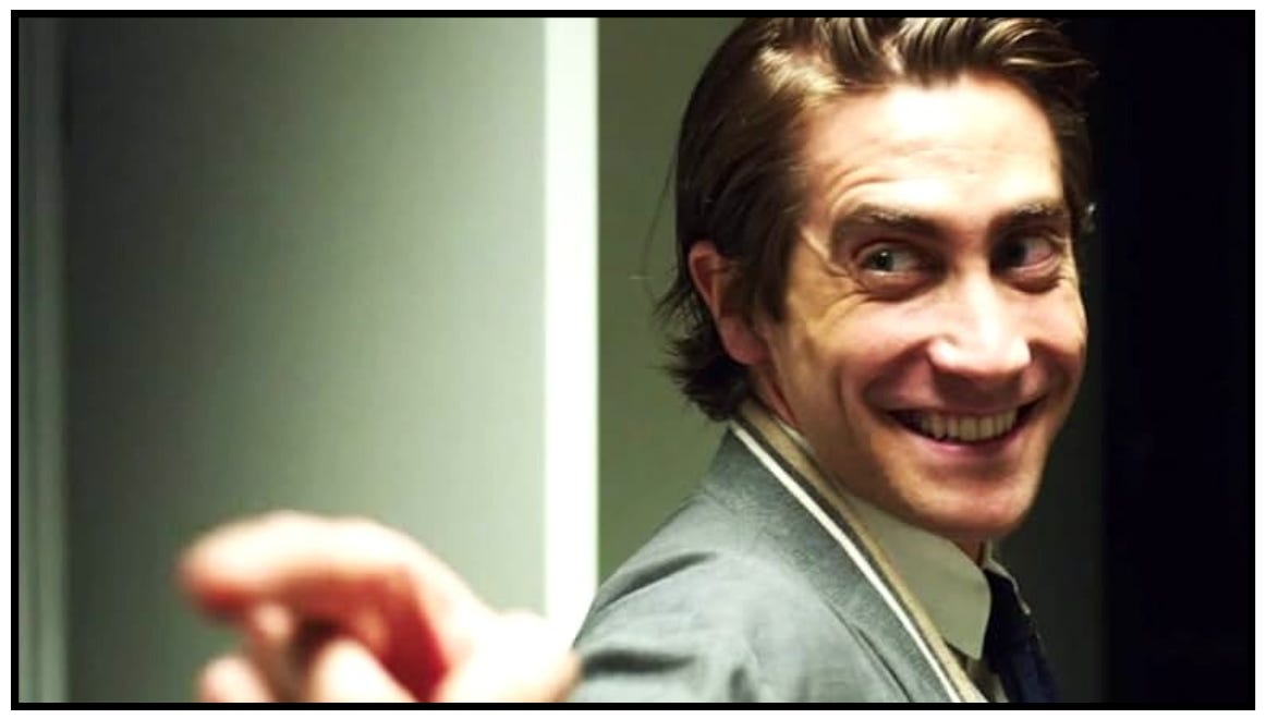 In addition, Gyllenhaal has Lou constantly twitch and talk fast. And, by taking popular success jargon and making it sound like he’s memorized trendy buzzword phrases lifted straight from the latest self-help bestseller, Gyllenhaal twists them into something more detached and ominous: