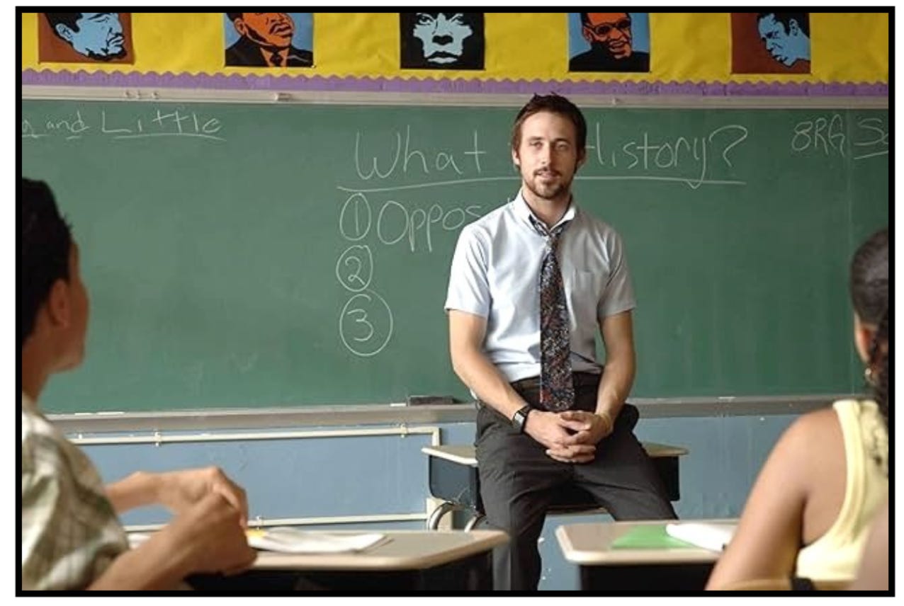 For Ryan Gosling, it was his portrayal of Dan Dunne, the dedicated but also crack addicted junior high school teacher, in the Sundance hit, Half Nelson. Nothing Gosling had done up to that point prepared audiences for his performance as the flawed, miserable, and yet dedicated teacher who cares about his inner-city students but who also smokes crack in the school’s bathroom. It was an unglamorous role that allowed Gosling to build on his previous success portraying the complex Jewish neo-Nazi in The Believer.