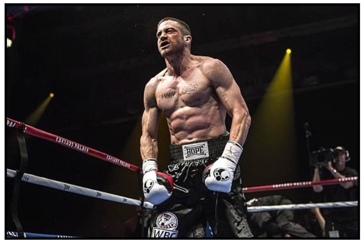 Then there’s Billy Hope, the physical opposite of Lou Bloom. In order to play the light-heavyweight champion in Southpaw, Gyllenhaal gained twenty pounds of muscle and reportedly trained twice a day for five months as he prepared for the role. When filming began, Gyllenhaal even did his own fight scenes using proper boxing technique and didn’t rely on stunt doubles. The result is a performance that feels authentic and real, even though the script is riddled with sports movie clichés.
